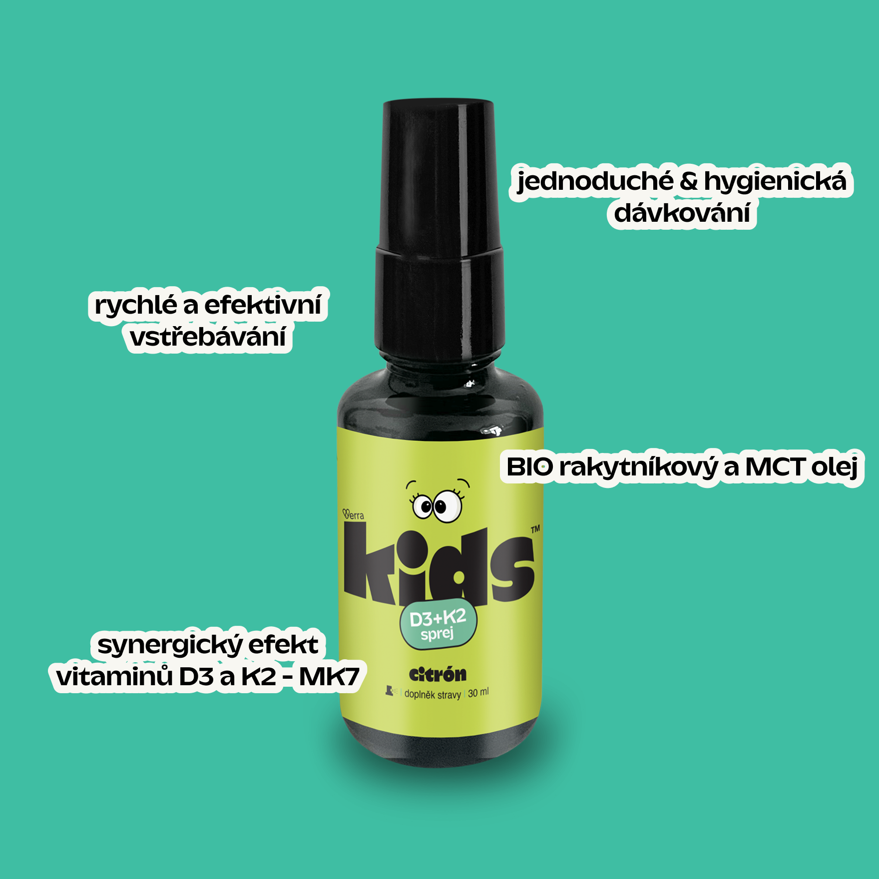 Produkt D3 + K2 sprej odporúčame kombinovať s produktom Probiotiká+ aj s produktom Kosti & Zuby pre maximálne využitie a vstrebávanie vápnika a fosforu. Produkt Imunita & Zdravie už obsahuje vitamíny D3 aj K2, preto pri jeho užívaní zvyčajne nie je potrebné tieto vitamíny dopĺňať samostatne. Ak zvažujete kombináciu viacerých produktov alebo máte podozrenie na dlhodobý deficit, odporúčame všetko vopred konzultovať s pediatrom.