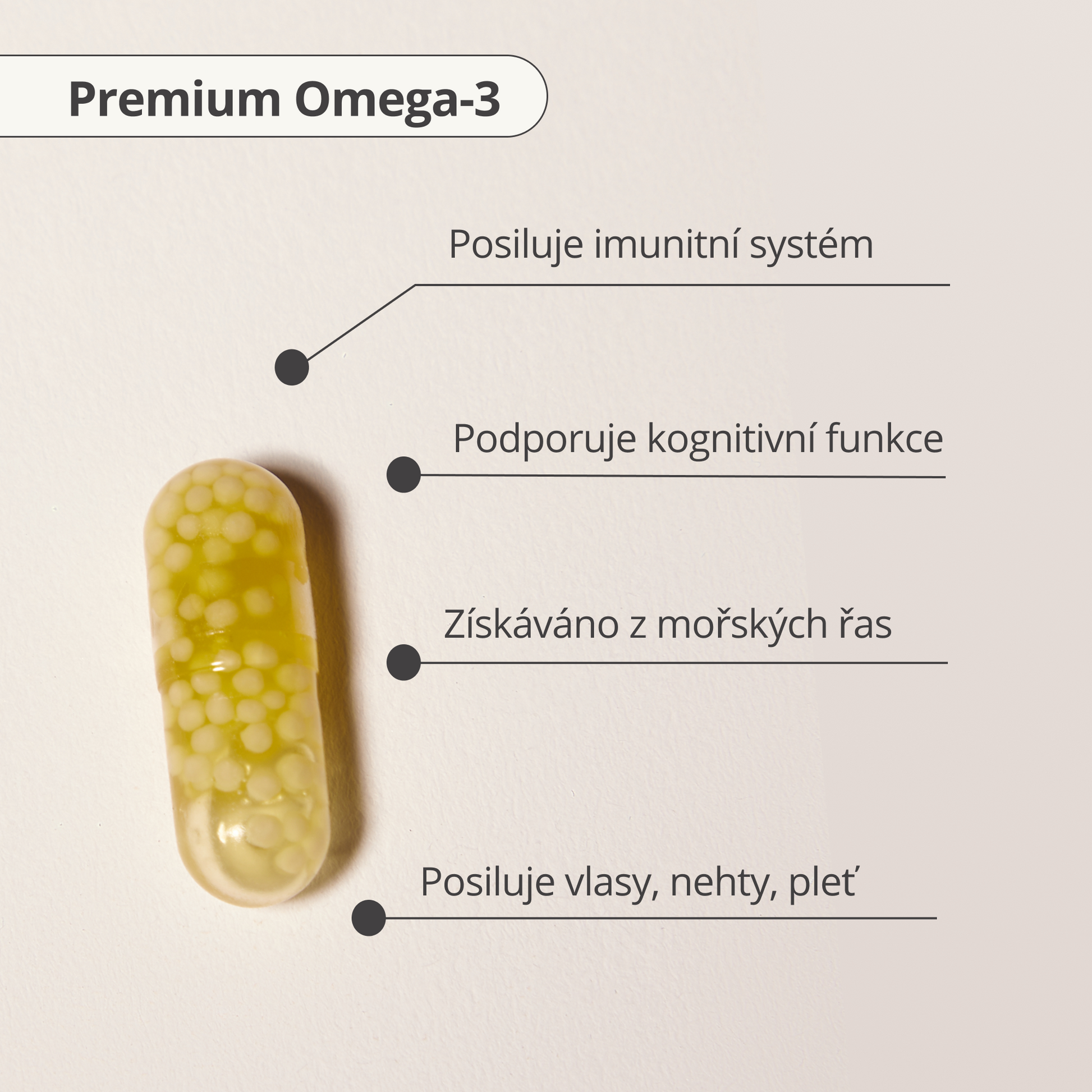 Esenciálne omega-3 mastné kyseliny z morských rias pre správnu činnosť srdca a ciev.
