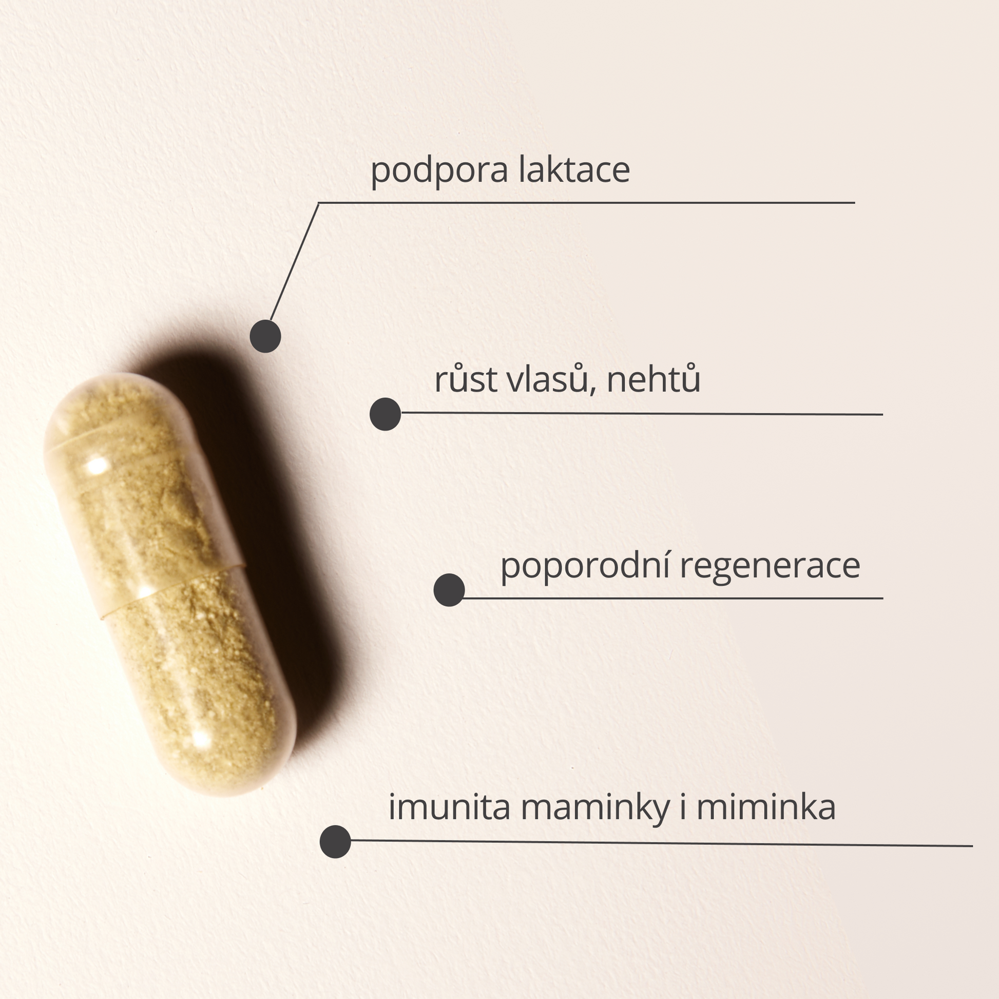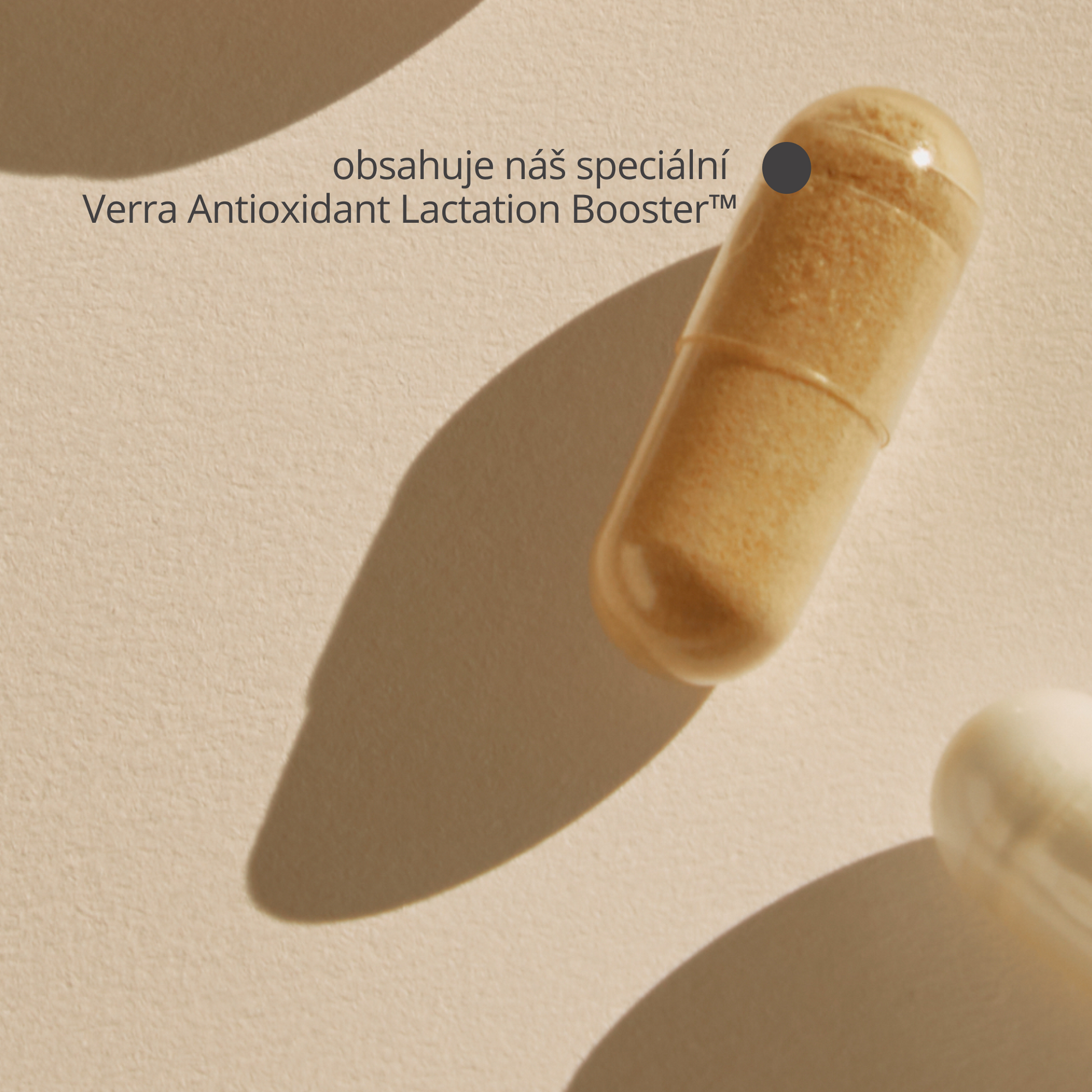 Zloženie v 3 kapsuliach: Obal kapsuly: hydroxypropylmetylcelulóza, Vápnik (vápnik citrát), cholín (cholín bitartrát), Verra Lactation Booster™ (Špargľa hroznatá (Asparagus racemosus), Myo-inositol, extrakt z fenikla gréckeho sená (Trigonella foenum)), Lipozómový vitamín C (fosfolipidy kyseliny palmitoolejovej získané z non-GMO slnečnice), L-cysteín báza, L-tyrozín, železo (železo bisglycinát), Protihrudkujúca látka: mikrokryštalická celulóza; niacín (nikotinamid), zinok (zinok glukonát), vitamín E (DL-α-tokoferyl-acetát), vitamín B5 (vápnik D-pantotenát), vitamín B2 (riboflavín), vitamín B6 (pyridoxín-hydrochlorid), farbivo: vápenatý uhličitan; vitamín B1 (tiamín), vitamín A (retinyl-acetát), kyselina listová (vápnik L-methylfolát), jód (draselný jodid), vitamín B7 (biotín), selén (L-seleno-metionín), vitamín D3 (cholekalciferol), vitamín B12 (methylkobalamín)