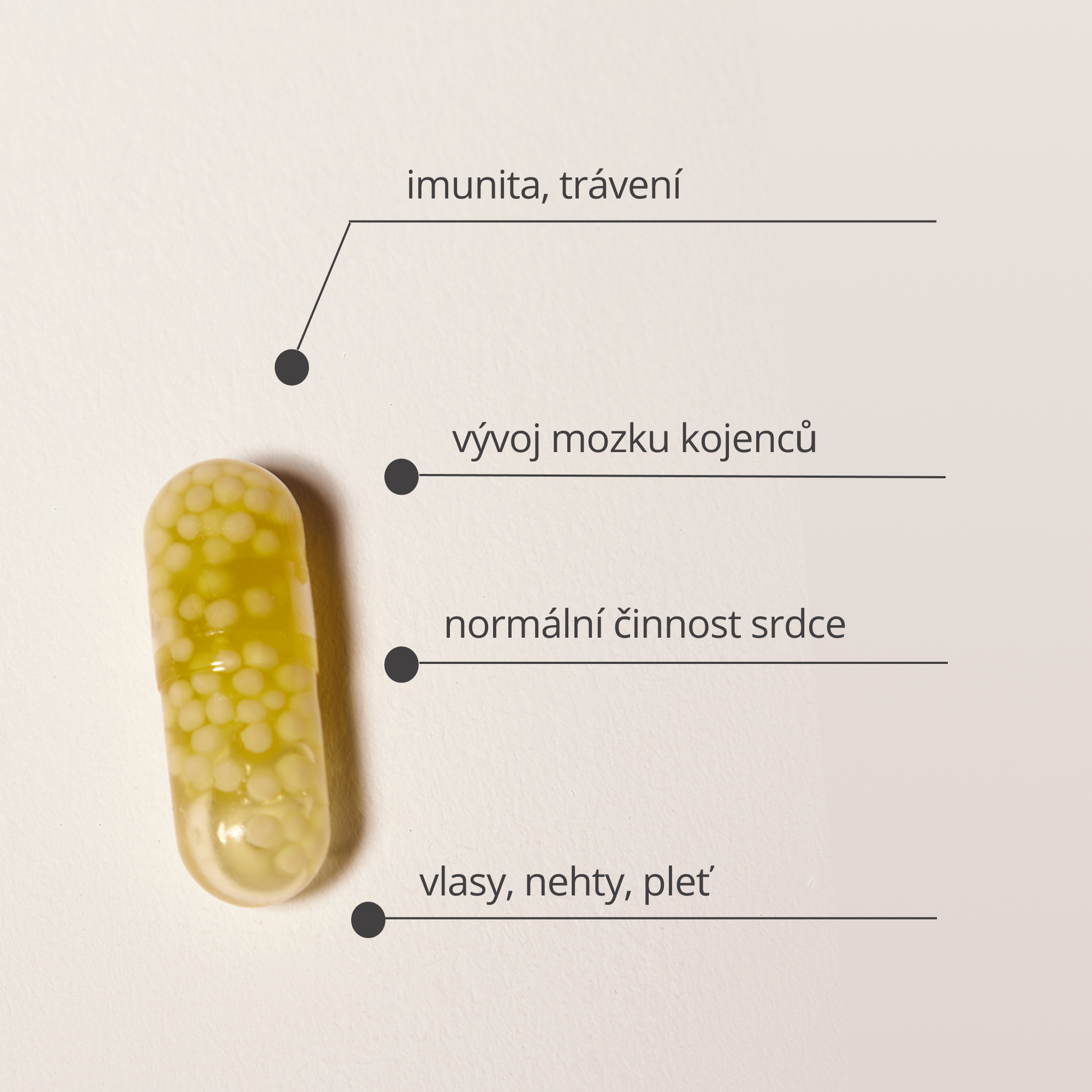 Jedná sa o tzv. pelety s vitamínom C. Pretože ide o vitamín rozpustný vo vode, v omega-3 oleji by sa nerozpustil. Z tohto dôvodu sme zvolili formu pelet.