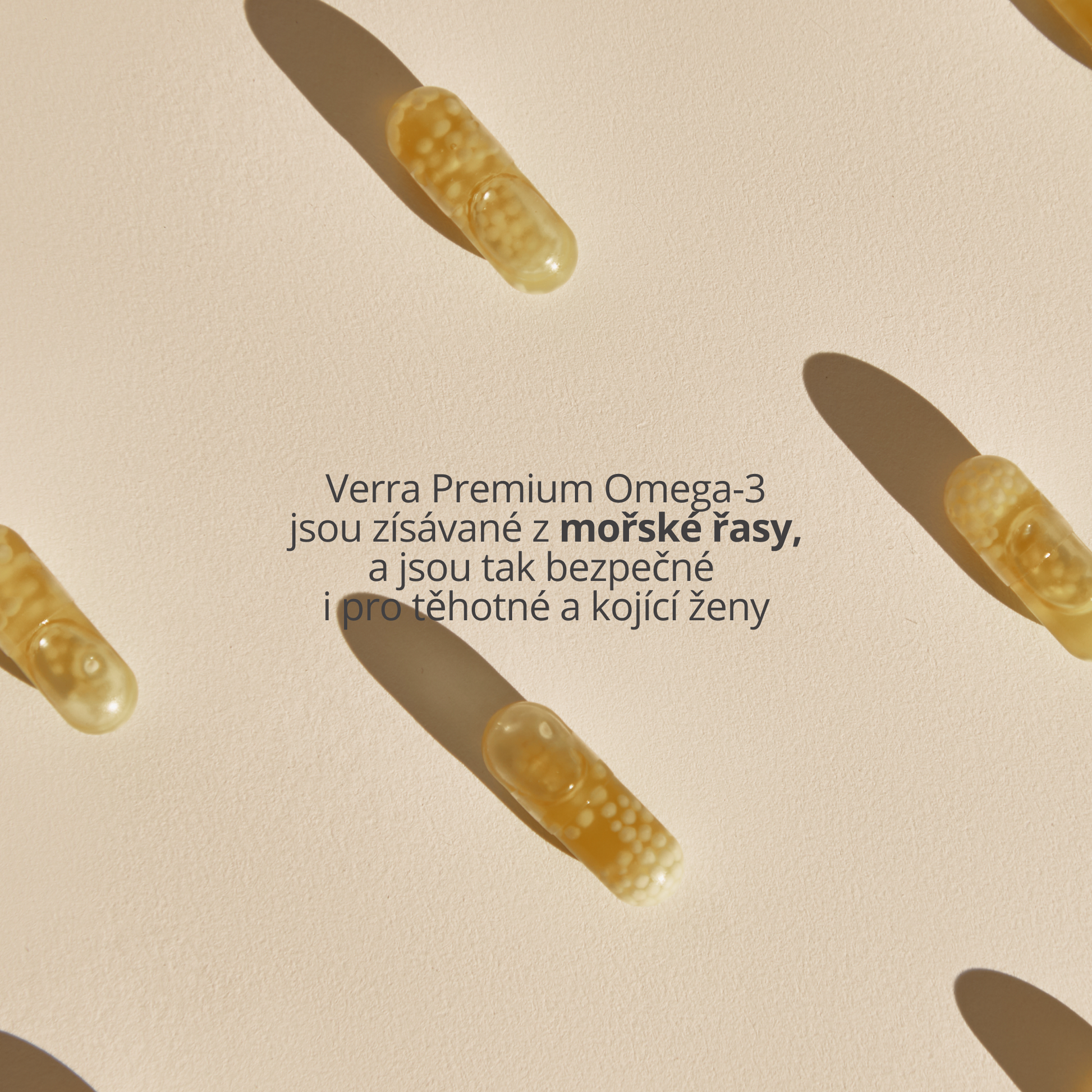 Produkt Premium Omega-3 obsahuje mastné kyseliny získané z morských rias, ktoré prispievajú k normálnej činnosti imunitného systému, trávenia aj srdca. A pretože naše telo ich nedokáže vyrobiť samo, musíme ich prijímať z potravy. Z potravy ich však väčšina stredoeurópanov dostatočnú množstvo neprijíma. Z tohto dôvodu odporúčame omega-3 mastné kyseliny užívať každému. A najmä počas tehotenstva a dojčenia, kedy sa ich potreba zvyšuje a sú esenciálne pre normálny vývoj mozgu plodu a dojčiat vyživovaných materským mliekom.