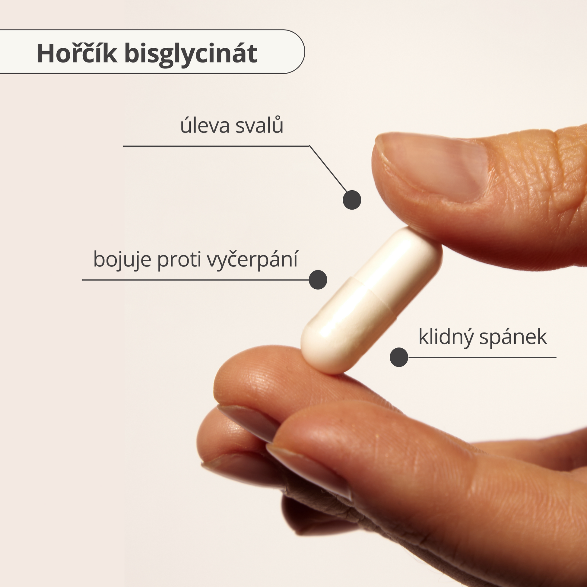 Vo vysoko vstrebateľnej forme bisglycinátu horečnatého pre normálny stav kostí, pokojný spánok a zníženie miery vyčerpania.