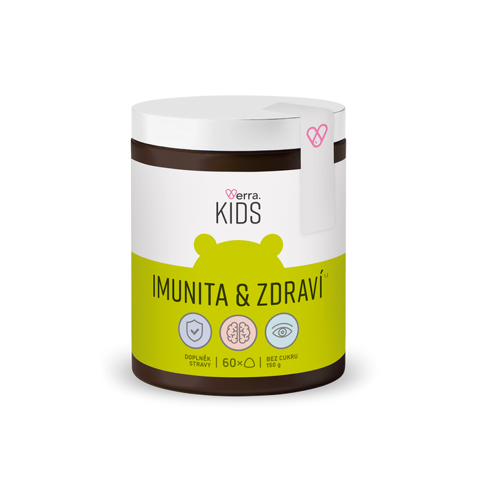 Ide o prémiový vitamínový komplex na podporu imunity a celkového zdravia dieťaťa, ktorý je určený pre deti od 3 rokov. Produkt je vyrobený na rastlinnej báze vo forme gumových medvedíkov s príchuťou lesného ovocia. Produkt IMUNITA & ZDRAVIE je unikátny svojim zložením, ktoré je dôležité pre správny vývoj dieťaťa. Obsahuje kvalitné a potrebné látky v tej najvhodnejšej forme, aby ich telo dokázalo maximálne využiť a vstrebať. Obsahuje mnoho organických mikronutrientov, antioxidant lykopén, prebiotické vlákniny pektín a prírodné sladidlo maltitol, ktorý pôsobí tiež prebioticky a má navyše nekariogénny efekt na zuby (nepoškodzuje zuby). Cholín, ktorý sa v komplexe taktiež vyskytuje, je nevyhnutným prenášačom nervového vzruchu a podieľa sa tak na správnej funkcii mozgu.