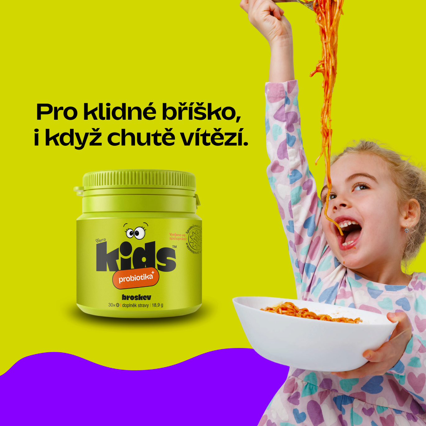 Ide o prémiovú zmes probiotických kmeňov, ktoré zohrávajú nevyhnutnú úlohu pri budovaní črevného mikrobiómu. Zdravý a dobre osídlený mikrobióm podporuje kvalitnú imunitu detí a znižuje výskyt ochorení, ktoré sa šíria v kolektívoch. Zároveň má dlhodobý účinok pri prevencii rozvoja alergií a atopických ochorení. V kombinácii s prebiotickou zložkou (fruktooligosacharidy na báze čakanky) vzniká vysoko kvalitný a komplexný výživový doplnok, ktorý nielen dobre chutí, ale predovšetkým funguje.