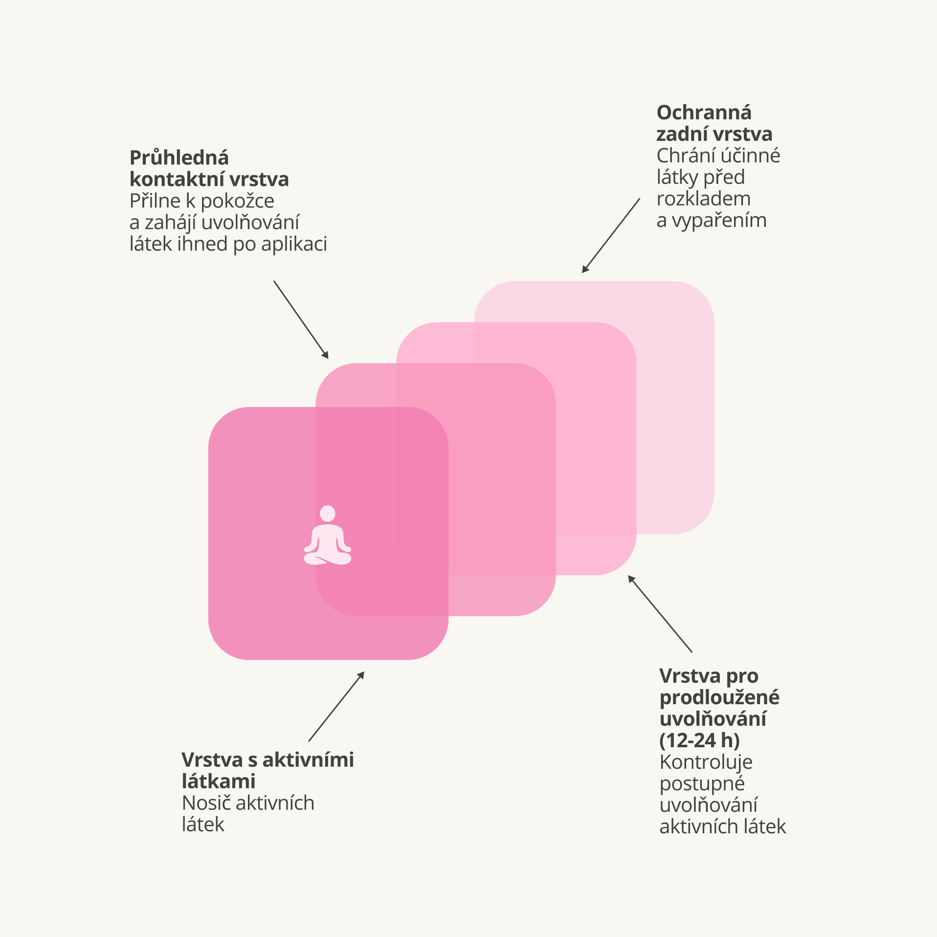 Náplasť má 4 vrstvy. Spodná vrstva náplasti je nosičom aktívnych látok (ako roslinných extraktov, tak vitamínu). Druhá vrstva zaisťuje homogénnu penetráciu účinných látok. Tretia vrstva zaisťuje postupné uvoľňovanie účinných látok po dobu 12-24 hodín. Vrchná vrstva chráni účinné látky pred rozkladom a vyparením.